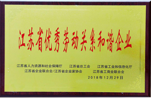 2018年12月,集團(tuán)榮獲“江蘇省優(yōu)秀勞動(dòng)關(guān)系和諧企業(yè)”的稱號。