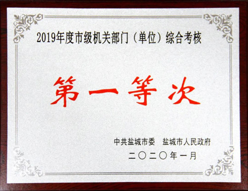 2020年1月,集團(tuán)在2019年度市級機(jī)關(guān)部門(單位)綜合考核中被鹽城市委、市人民政府評為“第一等次”。